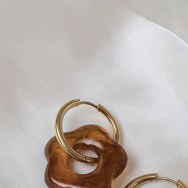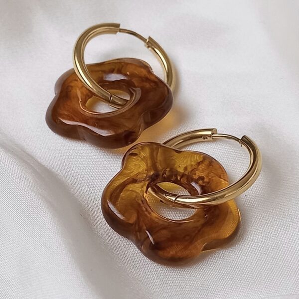 tortoiseshell earrings, brown earrings, flower hoop earrings, floral earrings, hoop earrings, statement earrings, lightweight earrings, gold hoop earrings, neutral jewellery, modern earrings, trendy earrings, unique earrings, fashion earrings, autumn jewellery, gift for her