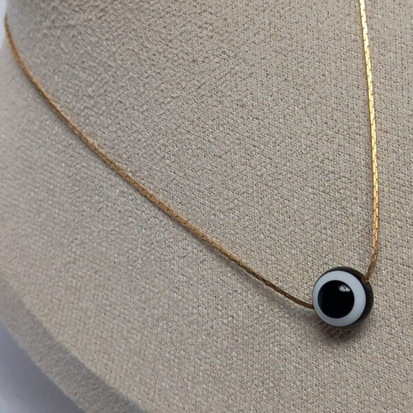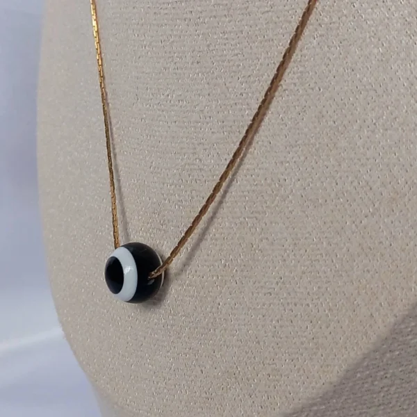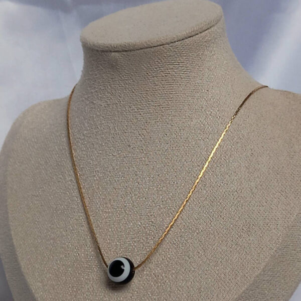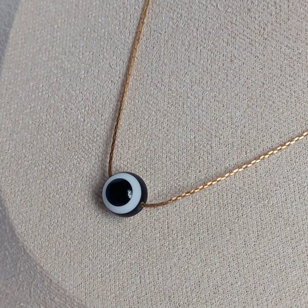 Minimalist evil eye pendant necklace with a sleek black and white design. Lightweight, stylish and perfect for everyday wear or layering.