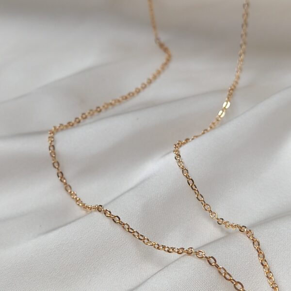 Suspended from a delicate gold chain, the pendant sits gracefully along the neckline, offering a refined and feminine look. Its minimalist style makes it perfect for layering with other necklaces or wearing alone as a simple statement piece. The soft gold finish reflects light beautifully, adding a gentle glow that enhances any outfit.