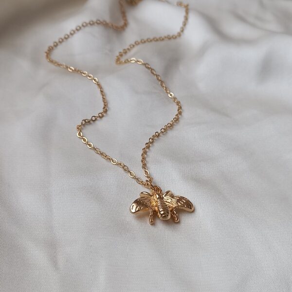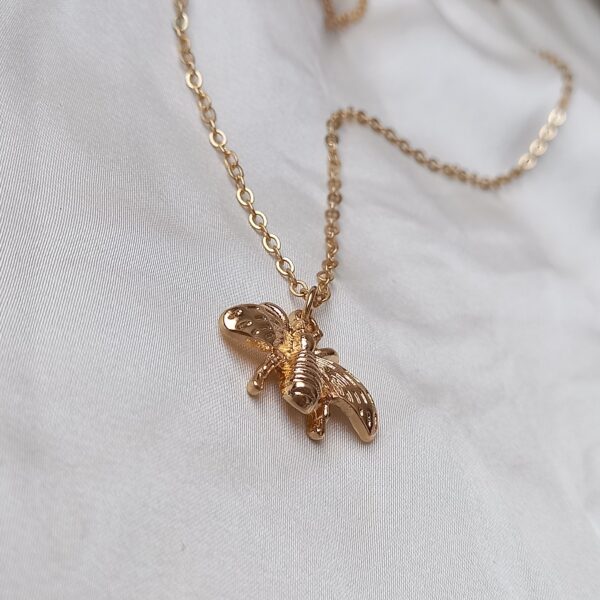 Elegant gold bee pendant necklace with a delicate chain. Lightweight, stylish and perfect for adding a subtle nature-inspired touch to any outfit.