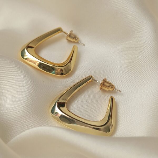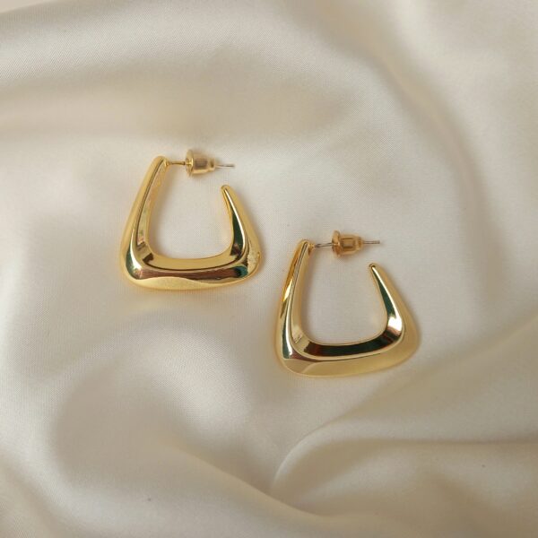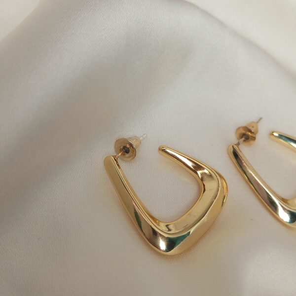 Modern gold sculpted hoop earrings with a bold, polished finish. Lightweight, minimal and perfect for adding a sleek statement to any outfit.