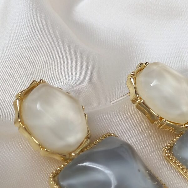 The neutral colour palette makes these earrings incredibly versatile, allowing them to complement a wide range of outfits. The soft pearl-effect top brings a luminous, classic feel, while the grey square drop introduces a modern, understated edge. Together, they create a balanced design that is both timeless and fashion-forward.