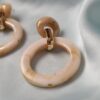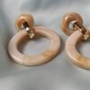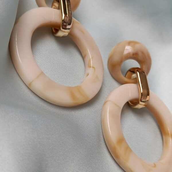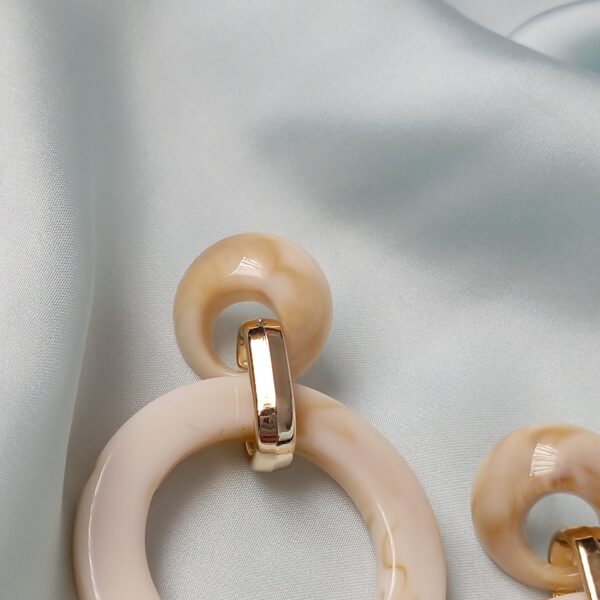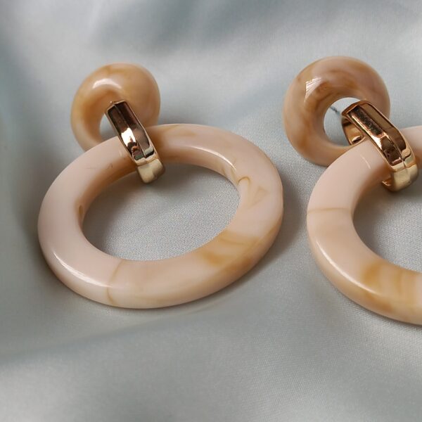 Crafted with a lightweight design, these earrings are comfortable enough for all-day wear while still making a stylish statement. The circular hoop shape adds a classic element, while the marbled texture introduces a unique and organic feel, ensuring that each pair has its own subtle variation. The gold connector detail enhances the overall design, adding a touch of elegance and shine without overpowering the soft tones.
