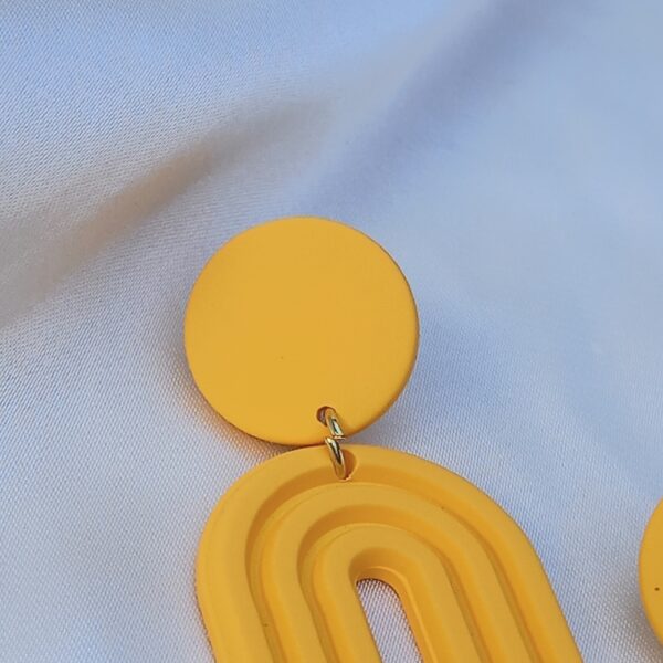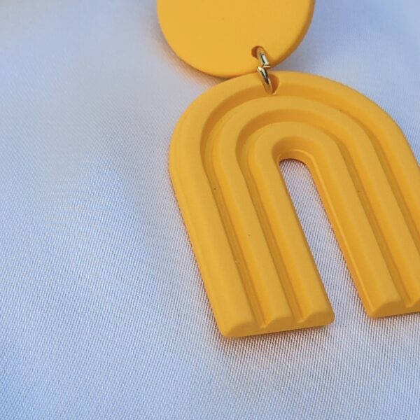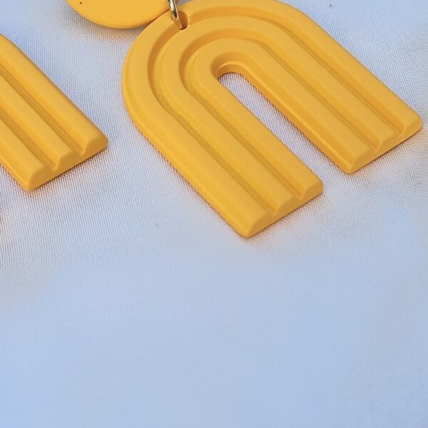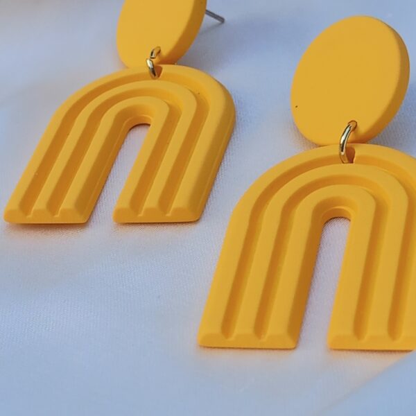 Bold yellow arch drop earrings with a modern geometric design. Lightweight, vibrant and perfect for adding a playful pop of colour to any outfit.